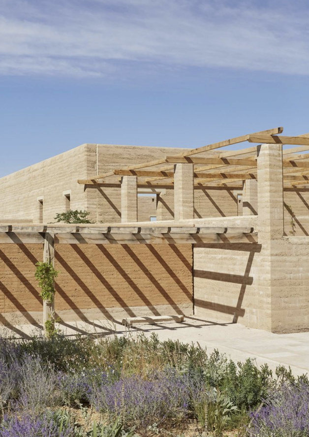 This quietly ecological approach extends to use of local timber and stone lintels from a nearby quarry. The demolished buildings were not only recycled in the site concrete; wooden beams were used to make furniture, windows and doors, and tiles were either reused elsewhere in the project or crushed for use in the landscaping. The gardens, designed by British landscape studio Tom Stuart‑Smith, consist of local plants capable of withstanding drought conditions.
